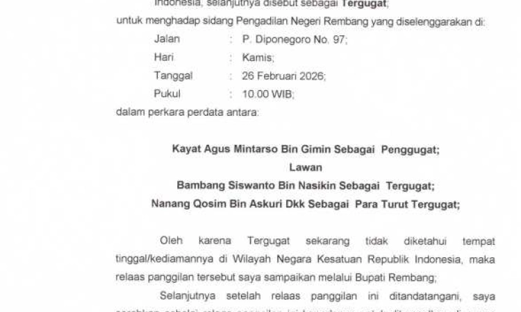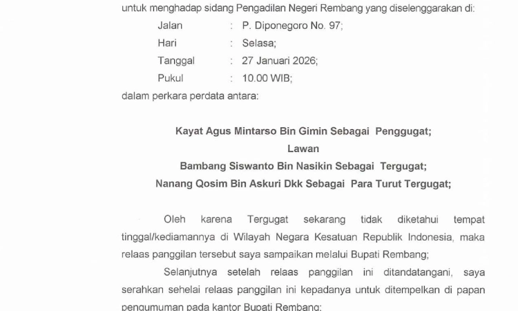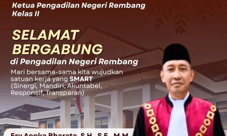 Terima kasih atas kerjasama dari semua pihak dan masyarakat Rembang pada khususnya, semoga keberadaan website Pengadilan Negeri Rembang ini dapat memberikan manfaat bagi kita semua.
