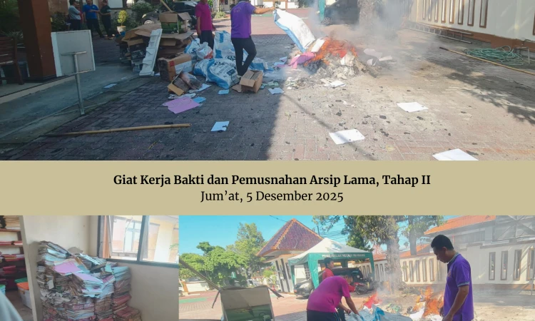 REMBANG – Pengadilan Negeri (PN) Rembang kembali menunjukkan komitmennya dalam mewujudkan lingkungan kerja yang asri serta tata kelola administrasi yang tertib. Pada hari ini, Jumat, 5 Desember 2025, seluruh jajaran aparatur PN Rembang melaksanakan agenda, yakni Giat Kerja Bakti dan Pemusnahan Arsip Lama Tahap II.
