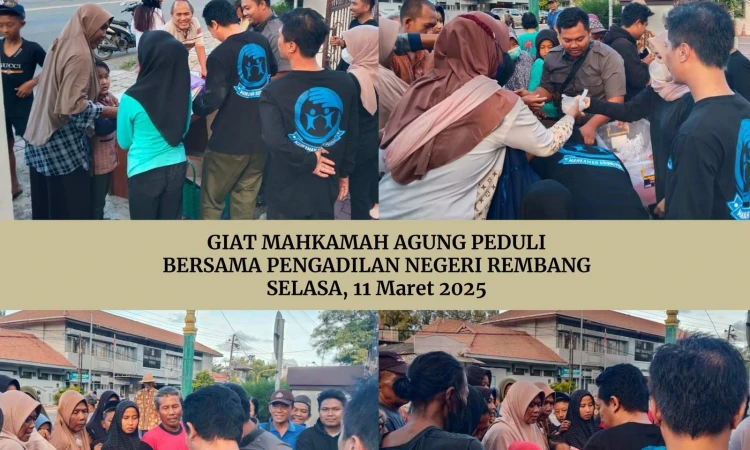 Dalam semangat kepedulian dan berbagi di bulan suci Ramadan, Mahkamah Agung Peduli bersama Pengadilan Negeri (PN) Rembang menggelar aksi sosial dengan membagikan takjil dan makan sahur gratis kepada masyarakat di berbagai sudut kota Rembang.