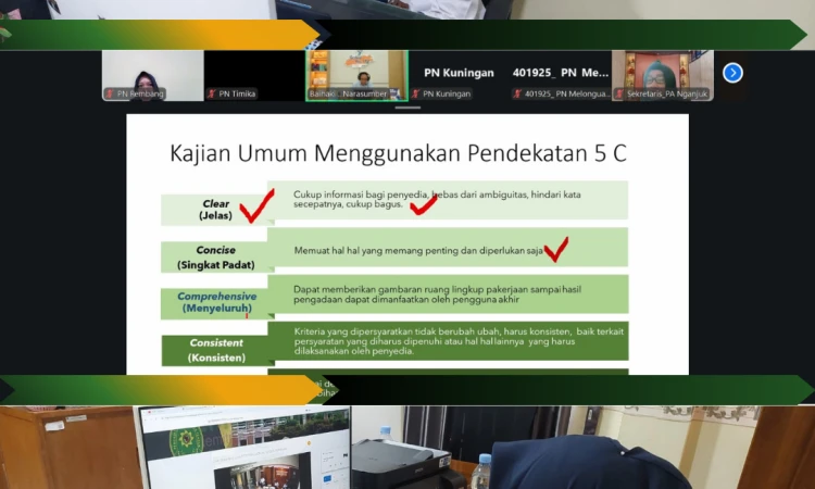 Pelatihan Webinar Kuasa Pengguna Anggaran (KPA) Tahun 2026 yang diselenggarakan oleh Badan Strategi Kebijakan dan Pendidikan dan Pelatihan Hukum dan Peradilan (Badan Strajak Diklat Kumdil) berlangsung pada Senin, 27 April 2026. Kegiatan ini dilaksanakan secara daring dan diikuti oleh para pejabat serta aparatur peradilan dari berbagai satuan kerja di lingkungan Mahkamah Agung dan badan peradilan di bawahnya.
