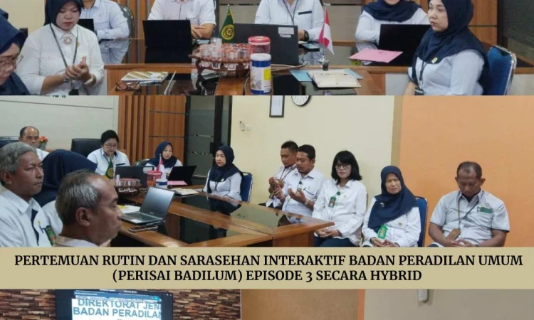 Senin, 20 Januari 2025. Bertempat di Ruang Media Center Pengadilan Negeri Rembang dilaksanakan Pertemuan Rutin dan Sarasehan Interaktif Badan Peradilan Umum (Perisai Badilum) episode 3 secara hybrid yang diikuti oleh Ketua Pengadilan Negeri Rembang, Wakil Ketua Pengadilan Negeri Rembang, Bapak/Ibu Hakim, Ibu Panitera serta tenaga teknis Kepaniteraan Pengadilan Negeri Rembang.