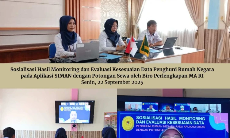Rembang, Senin 22 September 2025 — Pengadilan Negeri Rembang Kelas II mengikuti kegiatan Sosialisasi Hasil Monitoring dan Evaluasi Kesesuaian Data Penghuni Rumah Negara pada Aplikasi SIMAN dengan Potongan Sewa yang diselenggarakan secara daring melalui aplikasi Zoom Meeting.