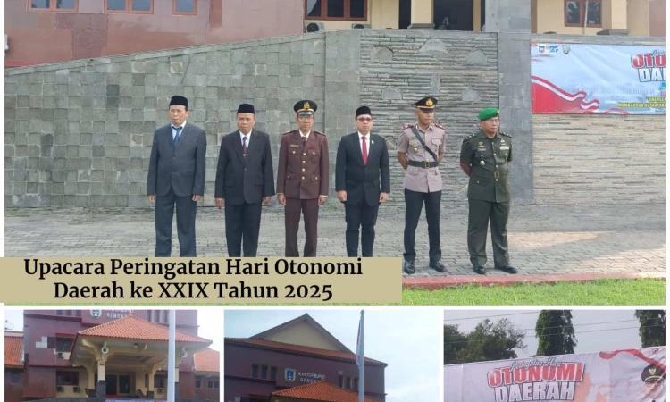 Hakim Pengadilan Negeri Rembang, Jon Mahmud, S.H., M.H., mewakili Ketua Pengadilan Negeri Rembang menghadiri Upacara Peringatan Hari Otonomi Daerah ke-XXIX yang diselenggarakan di Lapangan Kantor Bupati Kabupaten Rembang.