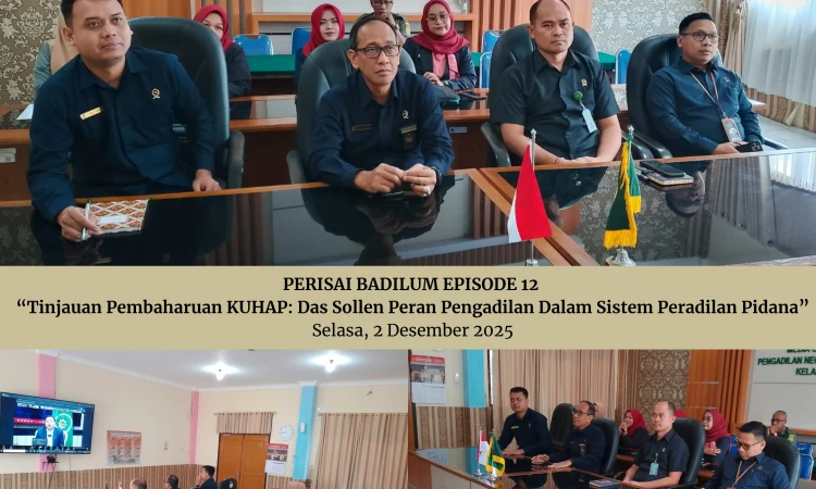 Rembang, 2 Desember 2025 — Pengadilan Negeri Rembang mengikuti kegiatan Zoom PERISAI BADILUM Episode 12 yang mengangkat tema “Tinjauan Pembaharuan KUHAP: Das Sollen Peran Pengadilan Dalam Sistem Peradilan Pidana.” Kegiatan ini diselenggarakan pada hari Selasa, 2 Desember 2025 dan bertempat di Ruang Media Center Pengadilan Negeri Rembang.